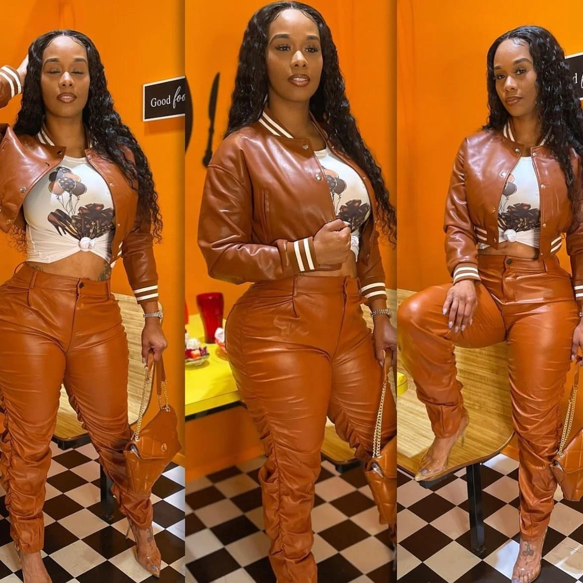 Fall 2022 Womens Coats Windproof Leather Jacket Women Fashion Patchwork Stripe Varsity Jacket